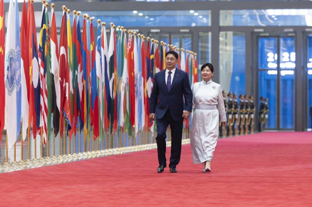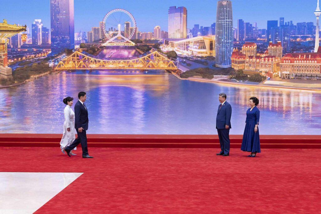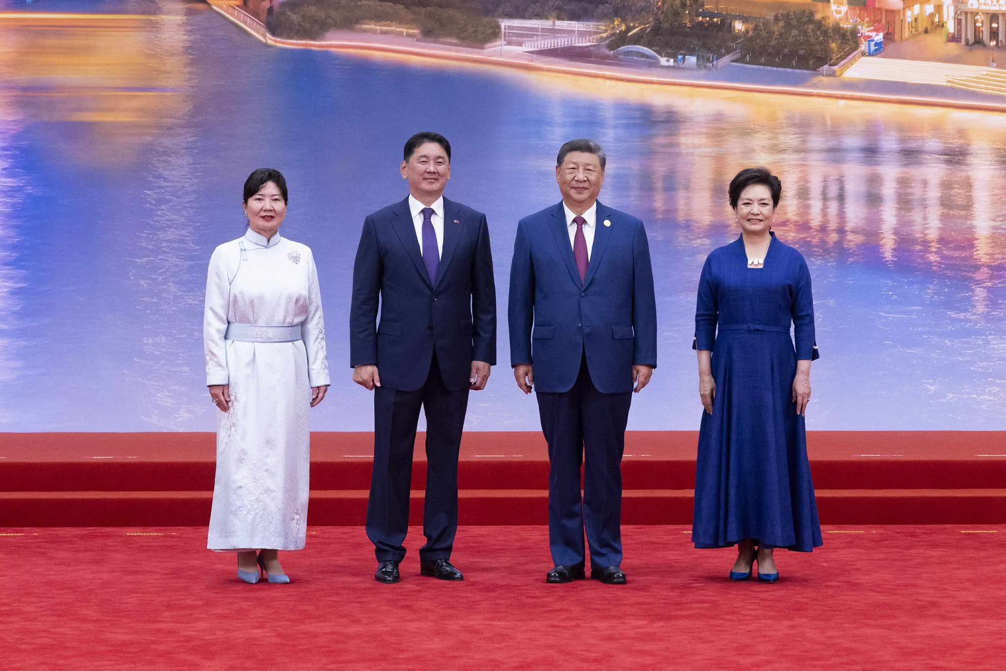 ШХАБ-ын гишүүн орнуудын Төрийн тэргүүн нарын зөвлөлийн өргөтгөсөн хуралдаанд оролцохоор БНХАУ-ын Тяньжин хотноо хүрэлцэн ирсэн Монгол Улсын Ерөнхийлөгч Ухнаагийн Хүрэлсүх, гэргий Лувсандоржийн Болорцэцэг нарыг БНХАУ-ын дарга Ши Жиньпин, гэргий Пөн Лиюань нар албан ёсоор угтлаа.