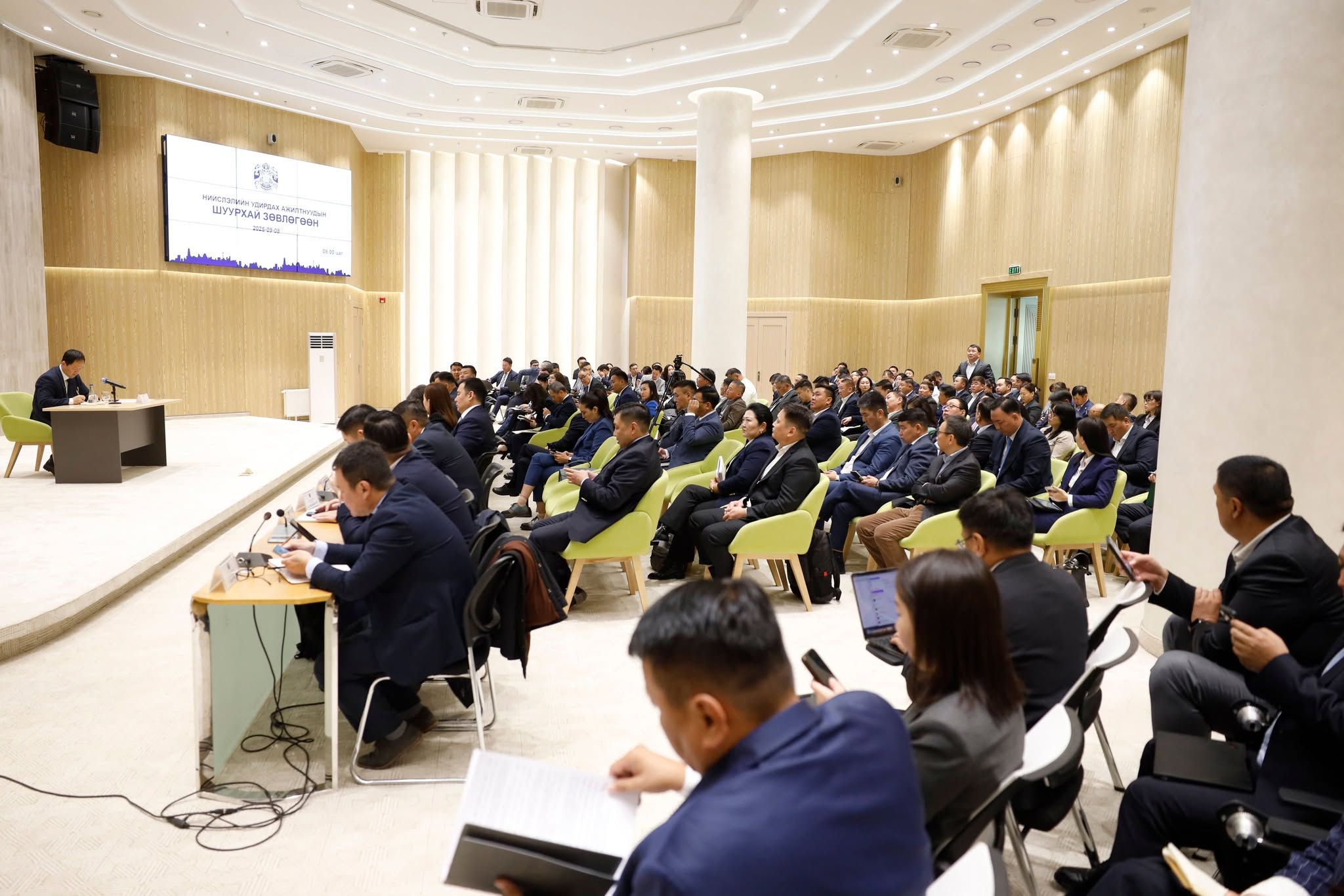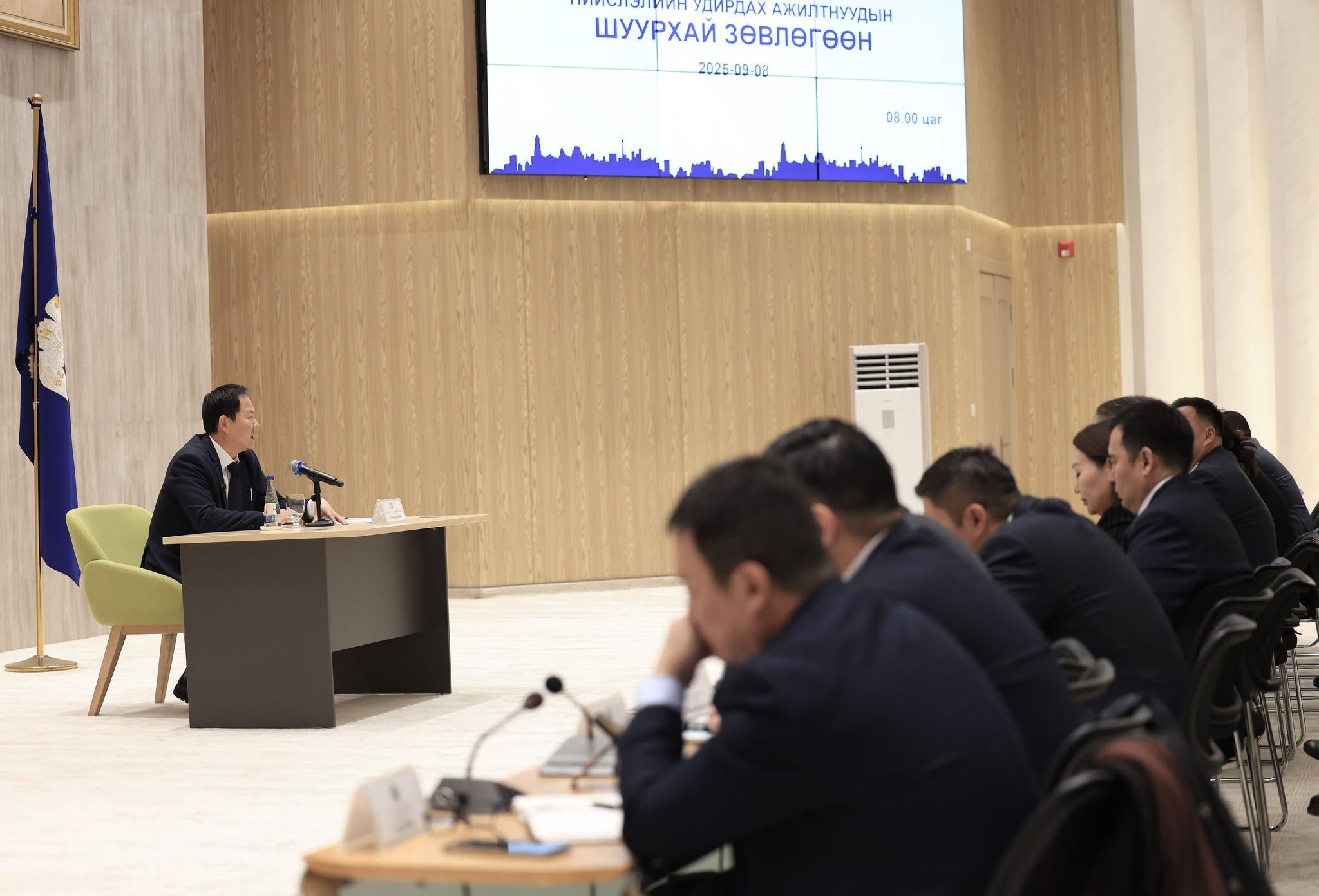 Нийслэлийн удирдах ажилтнуудын ээлжит шуурхай зөвлөгөөн өнөөдөр болж, өмнөх зөвлөгөөний үеэр өгсөн үүрэг даалгаврын биелэлт, өвөлжилтийн бэлтгэл ажлын явц зэрэг асуудлыг хэлэлцлээ. Зөвлөгөөний эхэнд НЗДТГ-ын Хяналт-Шинжилгээ, үнэлгээний газрын дарга Б.Мөнхбаяр өмнөх шуурхай зөвлөгөөний үүрэг даалгаврын биелэлтийг танилцуулав. Үргэлжлүүлэн УБЗАА-ны Хотын инженерийн дэд бүтцийн газрын дарга Л.Алтангэрэл өвөлжилтийн бэлтгэл ажлын явцын талаарх мэдээллийг өглөө.
