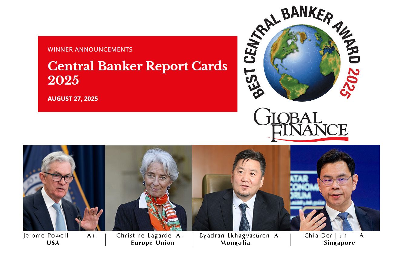 “Central Banker Report Cards-2025” тайланд хамгийн өндөр буюу “A+”-“A-“ үнэлгээ авсан дэлхийн төв банкны удирдлагуудыг олон нийтэд танилцууллаа. Уг тайланд Монголбанкны Ерөнхийлөгч Б.Лхагвасүрэн “A-” үнэлгээ авч, хоёр дахь жилдээ дараалан өндөр үнэлгээтэй төв банкны удирдлагуудын жагсаалтад багтав.