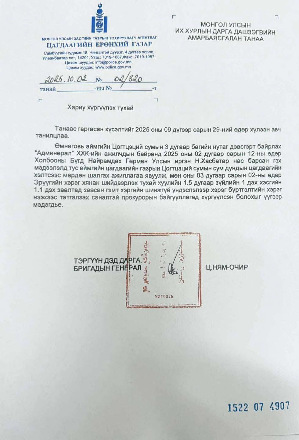Есдүгээр сарын 29-ний өдөр Д.Амарбаясгалан намайг онц ноцтой хүнд хүн амины гэмт хэрэгт гүтгэсэн. Энэ асуудлаар би тайлбар мэдээлэл гаргаж өгөх хүсэлтийг ЦЕГ-т хандсан. Мөн Хууль зүй дотоод хэргийн сайд Л.Мөнхбаатарт даваа гарагт хандан хууль хяналтын байгууллагыг шуурхай ажиллуулж өгөхийг хүсэж хандсан. Магадгүй үүнээс болоод Л.Мөнхбаатар сайдыг чөлөөлөх, Д.Амарбаясгаланд ЦЕГ-аас тайлбар өгүүлэхгүйн тулд хууль хяналтын байгууллагын үйл ажиллагаанд улс төрийн дарамт учруулж байна гэж үзэж байна. Хууль зүйн байнгын хорооны мэдээлэл сонсох хурал товлогдсоны хүчинд цагдаагийн байгууллагын хариу ирлээ. Уг хариуд энэ оны гуравдугаар сарын 2-ны өдөр талийгаач болсон этгээдтэй холбоотой асуудлаар хэрэг үүсгэхээс татгалзсан бичгийг цагдаагийн байгууллагаас прокурорын байгууллагад ирүүлсэн. Д.Амарбаясгалан намайг энэ хэрэгтэй холбогдуулан мэдүүлэг аваагүй, дуудаж шалгаагүй. Намайг гүтгэгч этгээд 30 сая ам.долларыг ковидын үед Монгол Улсын хилээр оруулж ирж, баримтыг мэдэж байсан хүнийг алсан гэж нэвтрүүлэгт орохдоо хэлсэн. Хүн албан тушаалд дуртай байж болно. Гэхдээ ийм гүтгэлэг хийж болохгүй. Би дөрвөн хүүхдийн эцэг хүн. Өнөөдөр би улстөрчдийн шунал, эрх мэдлийн төлөөх тэмцлээс болж доромжлуулж, гүтгүүлж байгаагаа хэзээ ч хүлээн зөвшөөрөх ёсгүй.