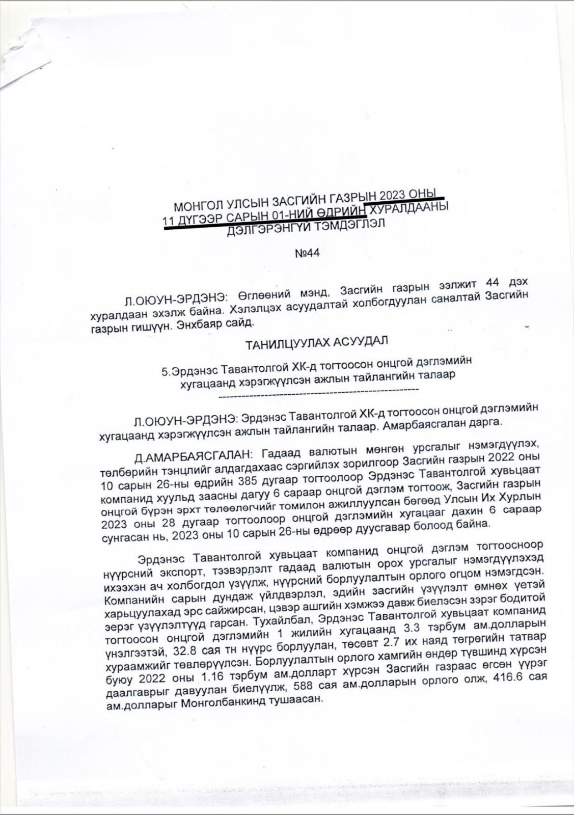 Засгийн газрын 2023.11.01-ний өдрийн(Нүүрсний сонсголоос 45 хоногийн өмнө) хуралдаанд хэлж байсан үг" гэсэн байна.