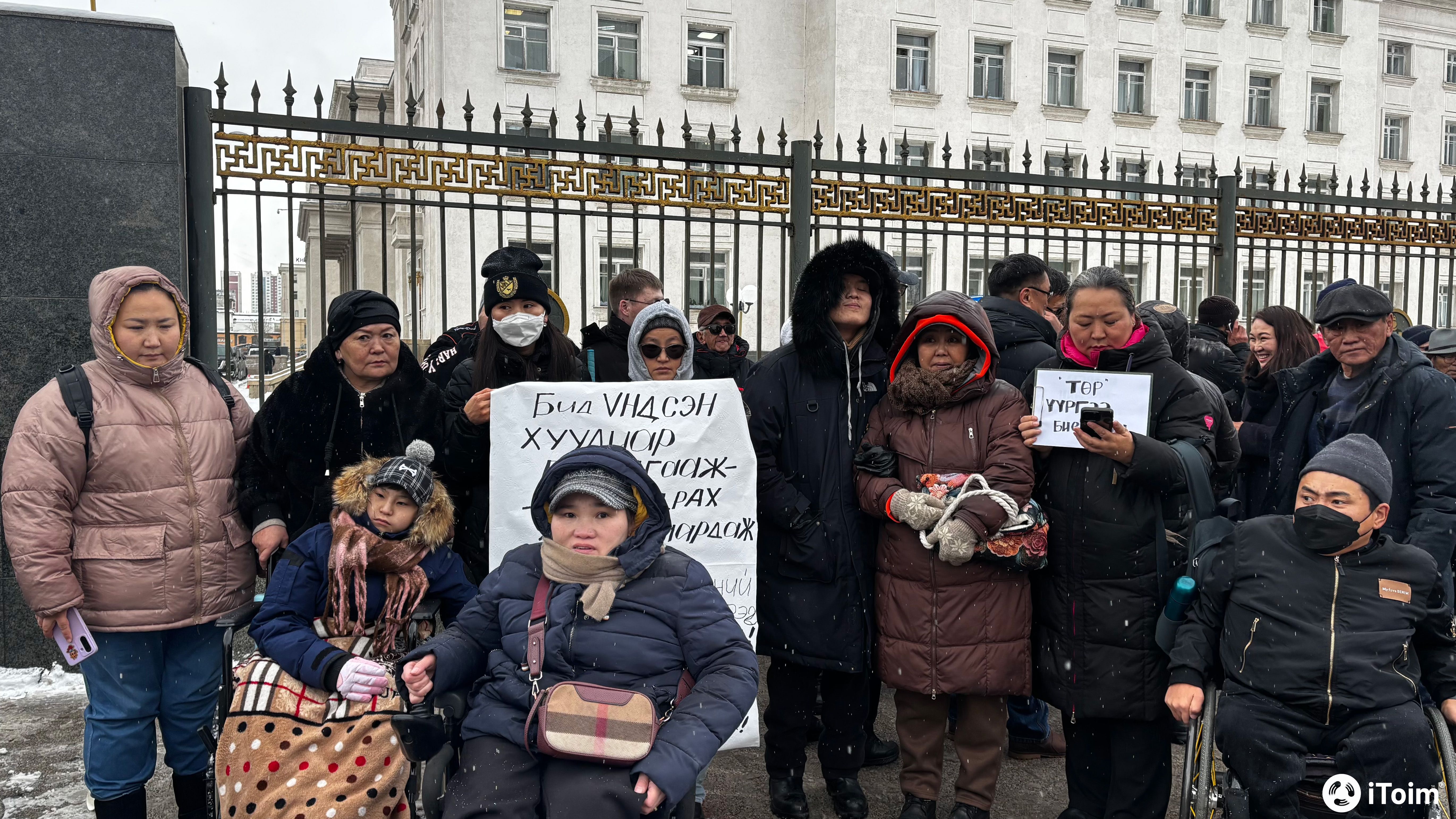 Хөгжлийн бэрхшээлтэй иргэд амьжиргааны түвшинд хүрэх хэмжээний тэтгэмж авахыг төрөөс шаардаж, өнөөдөр Төрийн ордны баруун талд жагсаал хийлээ. Тэдний хэлж буйгаар одоогийн олгож буй тэтгэмж нь наад захын хэрэглээнд хүрэлцэхгүй байгаа тул тэтгэмжийг нь нэмэгдүүлэх шаардлага тавьж байгаа аж. Мөн өчигдөр УИХ-ын нэгдсэн чуулганы хуралдааны үеэр хөгжлийн бэрхшээлтэй иргэдийг доромжилсон УИХ-ын гишүүн Ж.Батсуурийг уучлалт гуйхыг шаардав.
