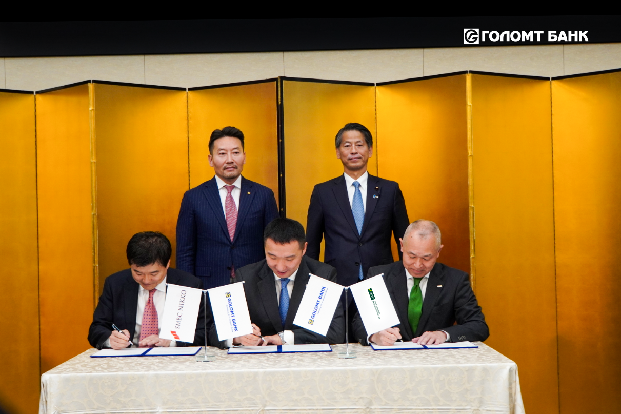 Энэхүү чухал үйл явдлыг баталгаажуулан Голомт банк, Sumitomo Mitsui Banking Corporation, SMBC Nikko Securities inc. төлөөллүүд 2025 оны 11-р сарын 26-нд Япон улсын Токио хотноо зохион байгуулагдсан “Монгол-Японы төр, хувийн хэвшлийн 12 дугаар зөвлөлдөх уулзалт”-ын үеэр ёслол хүндэтгэлтэйгээр гарын үсэг зурлаа.