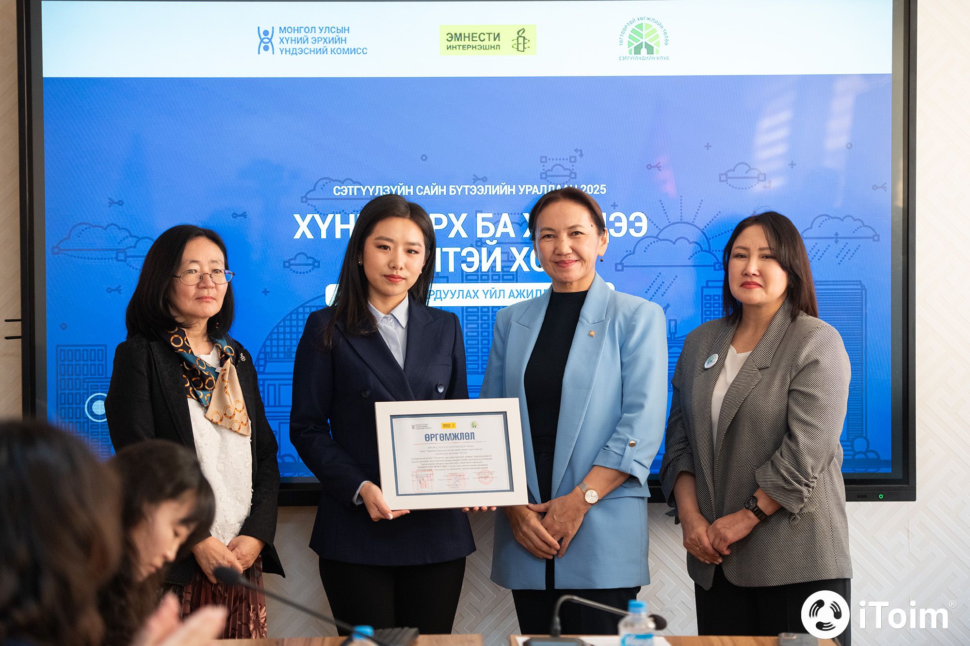 “Хүний эрх ба Хүндээ ээлтэй хот” сэтгүүл зүйн бүтээлийн уралдааныг Хүний эрхийн олон улсын өдрийг угтан Хүний эрхийн Үндэсний Комисс, Монголын Эмнести Интернэшнл болон “Тогтвортой хөгжлийн төлөө” сэтгүүлчдийн клуб хамтран гурав дахь жилдээ зохион байгуулж байгаа юм. Энэ жилийн уралдаан нь Тогтвортой хөгжлийн зорилтын 11 дэх зорилт болох “Ээлтэй хот, иргэдийн оролцоог дэмжих”-ийн хэрэгжилтэд хувь нэмэр оруулах, эрүүл, аюулгүй орчинд амьдрах эрхийн бодит нөхцөл байдлыг олон нийтэд ойлгуулах, тулгамдсан асуудлыг тодруулах, олон улсын сайн туршлагыг түгээн дэлгэрүүлэхэд чиглэв. Мөн хүний эрхэд суурилсан, төлөөллийн оролцоог хангах шийдвэр гаргалтад нөлөөлөхүйц санал, санаачилгыг дэмжих зорилготой байлаа. Иймд уралдаанд телевиз болон сонин, сайтын шилдэг найман бүтээлийг шалгарууллаа . Тодруулбал,Нэгдүгээр байрт:"Bpress.mn" сайтын сэтгүүлч Г.Батзаяагийн "Нэг л асуулт: Албадан чөлөөлөх нь шийдэл мөн үү" нэвтрүүлэг"Зууны мэдээ" сонины сэтгүүлч "Дахин төлөвлөлтийн хохирогчид Сэлбэ дэдээр үргэлжилсээр..." нийтлэлХоёрдугаар байрт:"ТВ9" телевизийн сэтгүүлч Б.Хонгорзулын "Дахин төлөвлөлт ингэж үргэлжилбэл өмчтэй иргэн үлдэхгүй нь" нэвтрүүлэг"Өнөөдөр" сонины сэтгүүлч О.Бат-Ундрахын "Угаарын урхаг буюу хотжилтын шинэ өвчин" нийтлэлГуравдугаарт:"МҮОНРТ-Монголын мэдээ" сувгийн сэтгүүлч Э.Отгонцэцэгийн "Харааны бэрхшээлтэй иргэдийн эрхийг хүртээмжгүй дэд бүтцээр зөрчсөөр..." мэдээ"Bpress.mn" сайтын сэтгүүлч Б.Будхүүгийн "Ээлтэй хотын шийдэл: Тэдэнд зориулаад барьчихвал бүгдэд хүртээмжтэй болно" нийтлэлТусгай байрт:iToim.mn сайтын сэтгүүлч Г.Хэрлэн, Х.Бямбажаргал нарын "Хотын стандартыг нүхэн жорлонгийн хувьсгалаас эхлүүлье"Child.mn сайтын сэтгүүлч А.Уянгын "Хүндээ ээлгүй хотын золиос хүүхэд" нзэрэг бүтээл тус тус шалгарчээ.Бүтээлүүдийг хүний эрх болон сэтгүүл зүйн чиглэлээр мэргэшсэн хараат бус гурван шүүгч үнэлж, уралдааны дүнг гаргав. Уралдаанд амжилттай оролцсон найман сэтгүүлчийг 500,000–3,000,000 төгрөгийн шагнал болон өргөмжлөлөөр шагнаж урамшууллаа.