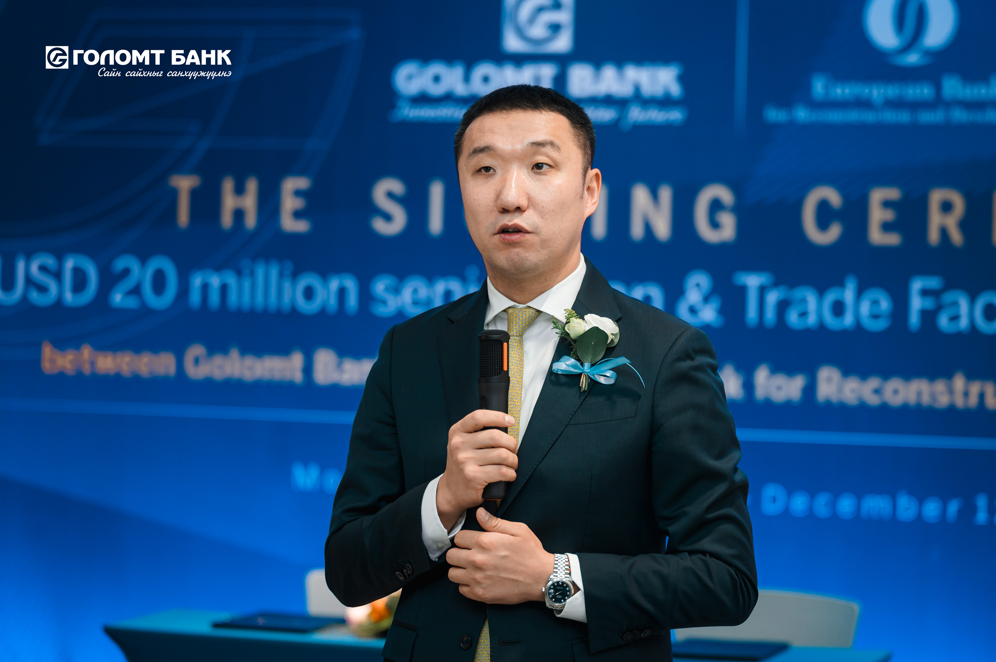 “Голомт банк 2022 оноос эхлэн бизнес эрхлэгч эмэгтэйчүүдийг дэмжин ажиллаж байгаа бөгөөд бүтээгдэхүүн үйлчилгээгээ хөгжүүлсээр байна. Энэ удаа Европын Сэргээн Босголт Хөгжлийн Банктай хамтран бичил, жижиг, дунд бизнесүүд рүү чиглэн ажиллах гэж байгаагаас гадна залуучуудын бизнес эрхлэлтийг дэмжиж, энэ сегментийг онцолж байгаад бидний хувьд баяртай байна. Бид энэхүү хамтын ажиллагааг улам өргөжүүлж, хамтдаа урт хугацааны үр нөлөөг бий болгоно гэж харж байна.”