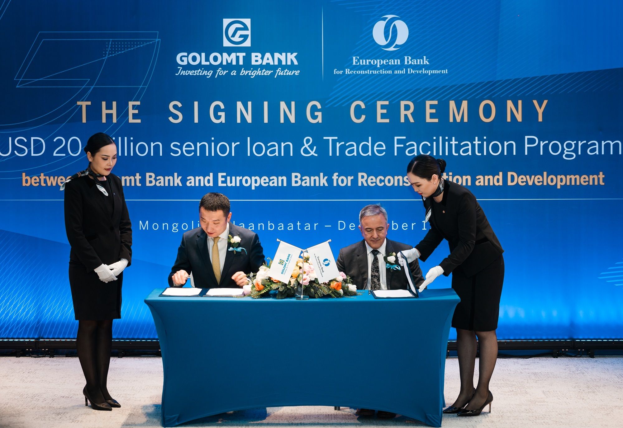 Голомт банк, Европын Сэргээн Босголт Хөгжлийн Банктай (ЕСБХБ) хамтран эмэгтэй бизнес эрхлэгчид болон залуу бизнес эрхлэгчдийн санхүүжилтийн хүртээмжийг нэмэгдүүлэх зорилгоор 20 сая ам.долларын урт хугацаат санхүүжилтийн гэрээг үзэглэлээ. Энэхүү санхүүжилт нь ЕСБХБ-ны “Төв Азийн бизнес эрхлэгч эмэгтэйчүүдийг дэмжих хөтөлбөр” болон “Залуу бизнес эрхлэгчдийг дэмжих хөтөлбөр”-ийн хүрээнд бизнес эрхлэгчдэд олгогдоно. Мөн импорт, экспортын бизнес эрхлэгчдийн үйл ажиллагааг дэмжих зориулалт бүхий “Гадаад худалдааг дэмжих хөтөлбөр”-ийн гэрээг байгууллаа.