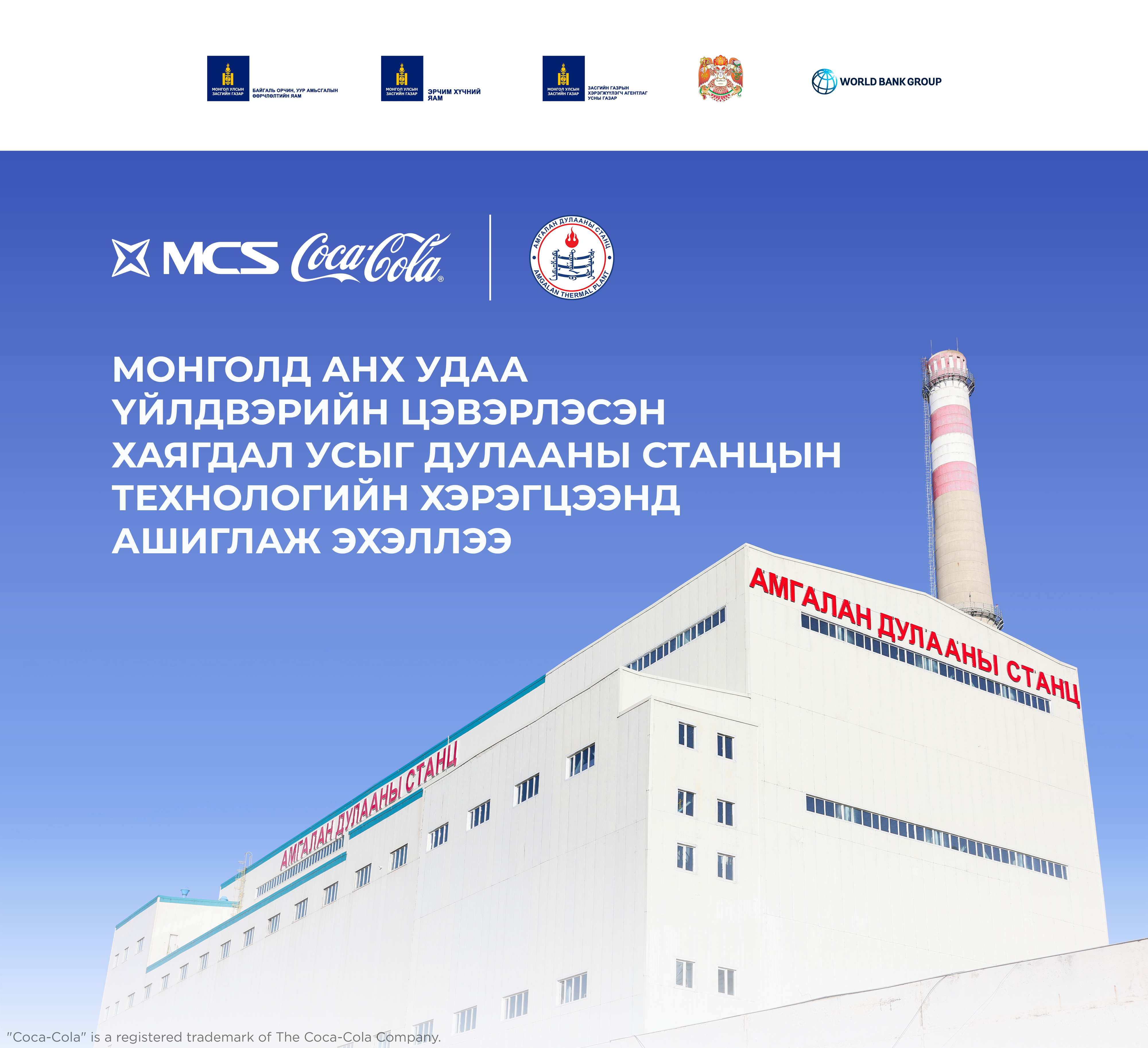 Төр хувийн хэвшлийн түншлэлээр Монголд анх удаа М-Си-Эс Кока-Кола ХХК-ийн Үйлдвэрийн цэвэрлэсэн хаягдал усыг Амгалан дулааны станц ТӨХК-ийн технологийн хэрэгцээнд дахин ашиглаж эхэллээ. Ингэснээр Амгалан Дулааны Станц ТӨХК нь төрийн өмчийн станцууд дундаа ногоон шийдэл нэвтрүүлсэн анхны станц болж, Улаанбаатар хотын эрчим хүч, усны менежментийн салбарт шинэ шат ахисан түүхэн үйл явдал тохиож байна. Энэхүү төслийг Байгаль орчин, уур амьсгалын өөрчлөлтийн яамны хүсэлтээр Дэлхийн Банкны “2030 Усны Нөөцийн Бүлэг” нь 2020-2024 онд БНСУ-ын Ногоон хөгжлийн итгэлцлийн сангийн санхүүжилтээр хэрэгжүүлж, дулааны станцын технологийн хэрэгцээнд тус компанийн Үйлдвэрийн цэвэрлэсэн хаягдал усыг ашиглах боломжтой болохыг баталгаажуулан тогтоож байжээ.