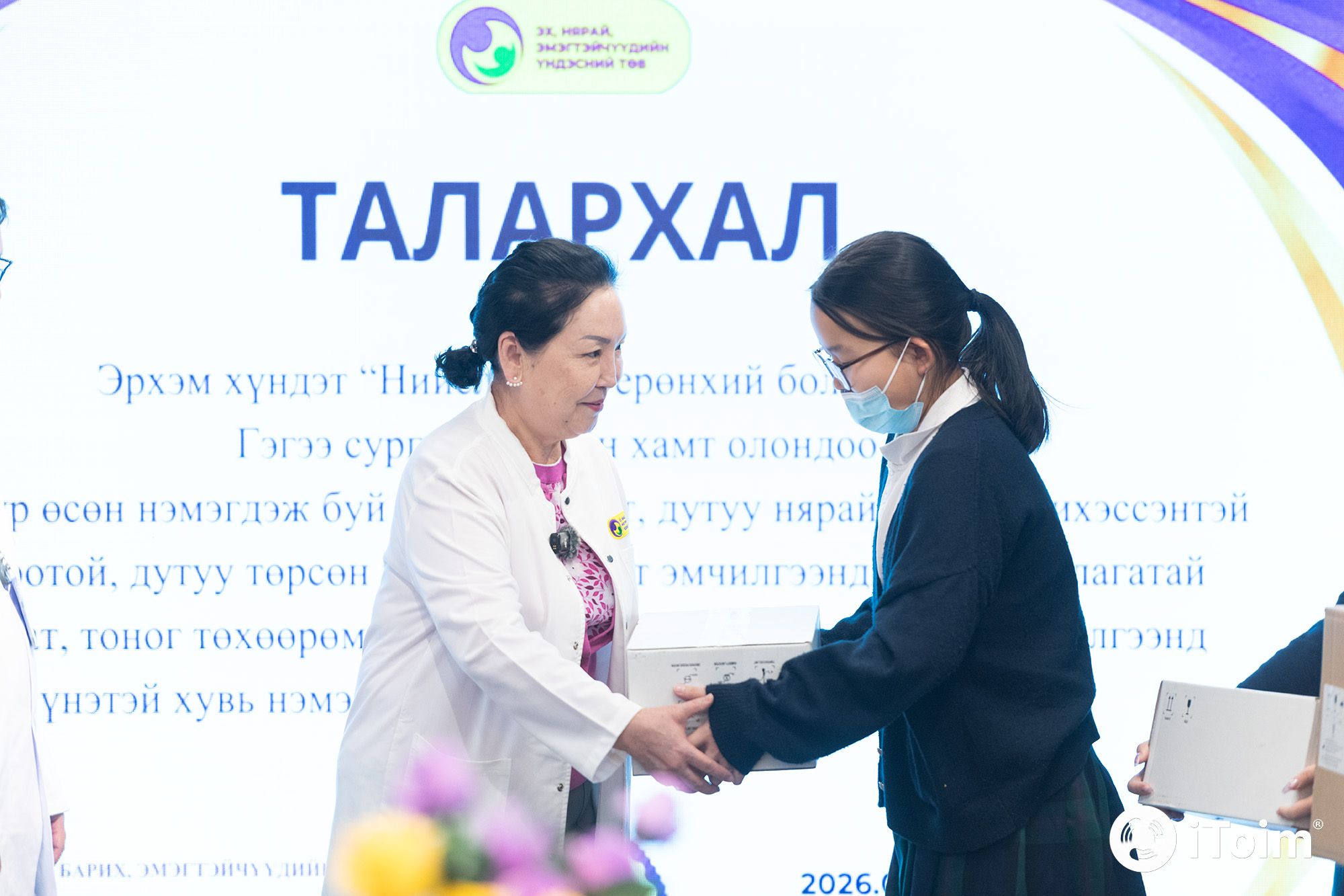 ЭНЭҮТ-ийн эмчилгээ эрхэлсэн дэд захирал Ж.Оюунцэцэг: Манай Эх нярай, эмэгтэйчүүдийн үндэсний төвийн эх барихын эмнэлгийн нэгдсэн нярайн тасагт Гэгээ сургуулийн сурагчид өөрсдийн чин сэтгэлийн дуудлагаар ирж, бидэнд нэн шаардлагатай байсан хоёр төрлийн аппаратыг тус бүр хоёрыг хүлээлгэн өглөө. Тэд хувийн хэрэглээ, шинэ жилийн бэлгээ хойш тавьж, мөнгөө хуримтлуулан гамнаж, дээрээс нь эцэг эхийнхээ дэмжлэгээр манай эмнэлэгт үнэхээр хэрэгцээтэй, чухал тоног төхөөрөмжийг бэлэглэсэнд бид туйлын их баяртай байна.