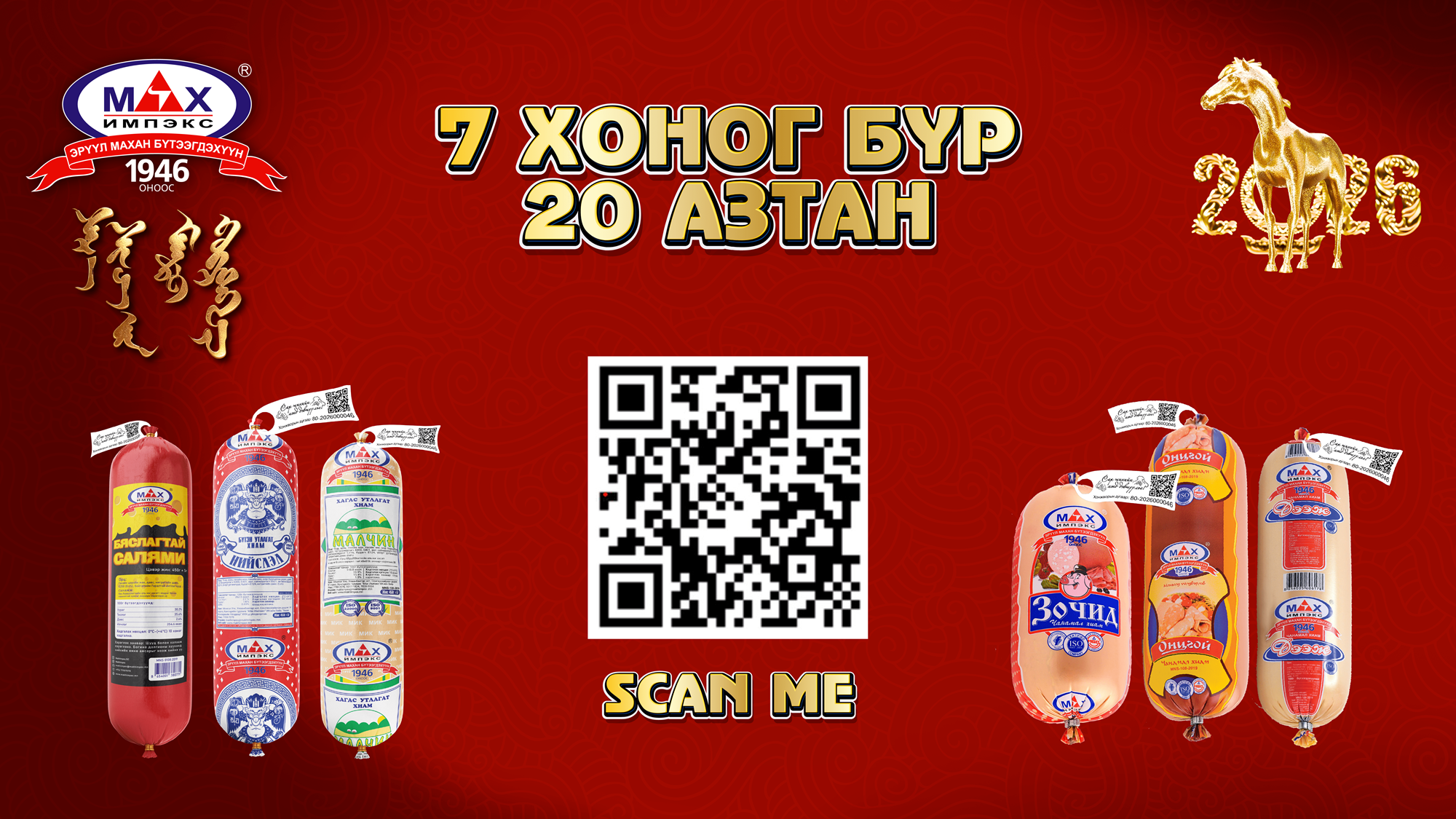 Тэртээ 1946 онд Нийслэл хотын хүн амыг мах махан бүтээгдэхүүнээр хангах зорилгоор үүсгэн байгуулагдсан үндэсний ууган үйлдвэрлэгч “Мах Импэкс” ХК түүхт 80 жилийн ойгоо угтаж нийт хэрэглэгчдэдээ зориулан 80 азтантай урамшуулалт хөтөлбөр зарлажээ.