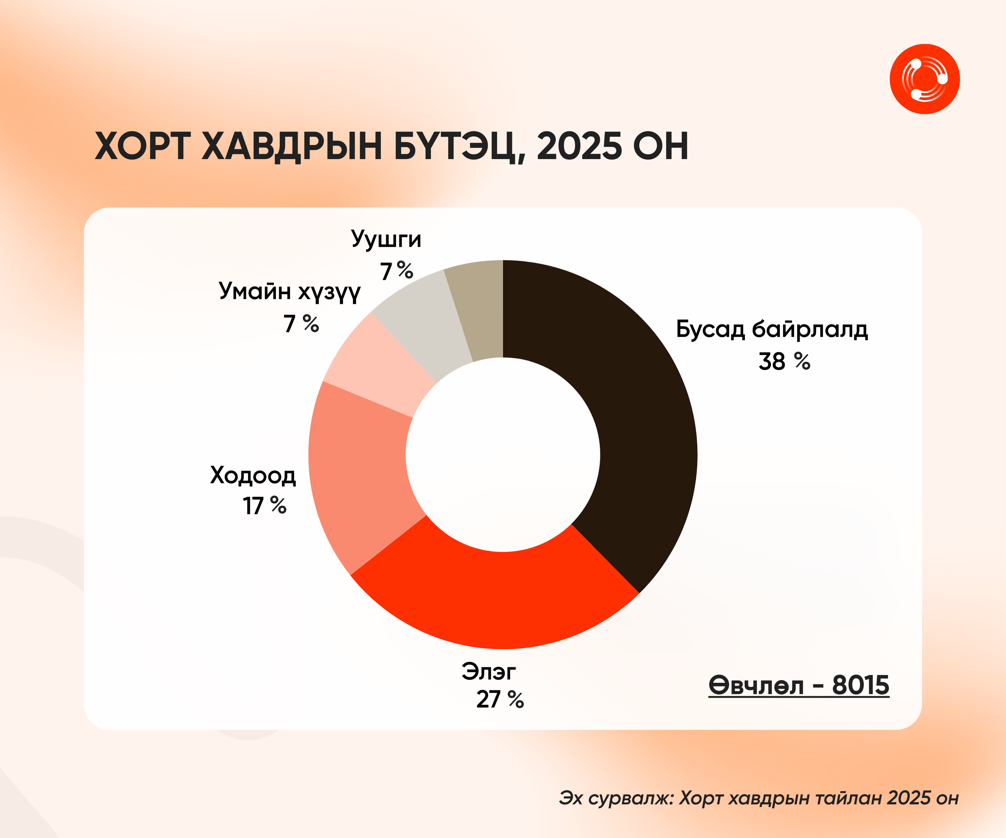 Өнгөрсөн онд бүртгэгдсэн хавдрын тохиолдол нь 2024 оныхоос 154-өөс нэмэгдсэн үзүүлэлт аж. Элэг, ходоод, уушги, гуурсан хоолой, умайн хүзүү, бүдүүн, шулуун гэдэсний хорт хавдар нь нийт өвчлөлийн 62.3 хувийг эзэлж байна. Энэхүү өвчний улмаас өнгөрсөн онд 4774 хүн нас барсан. 2025 оны жилийн эцсийн байдлаар хорт хавдар гэсэн оноштой 32979 хүн амьдарч байгаагийн 41 хувь нь тав ба түүнээс дээш жил амьдарч байна хэмээн “Хорт хавдрын эсрэг анхаарал хандуулах дэлхийн өдөр”-т зориулсан өдөрлөгийн үеэр ХСҮТ-өөс мэдээллээ.