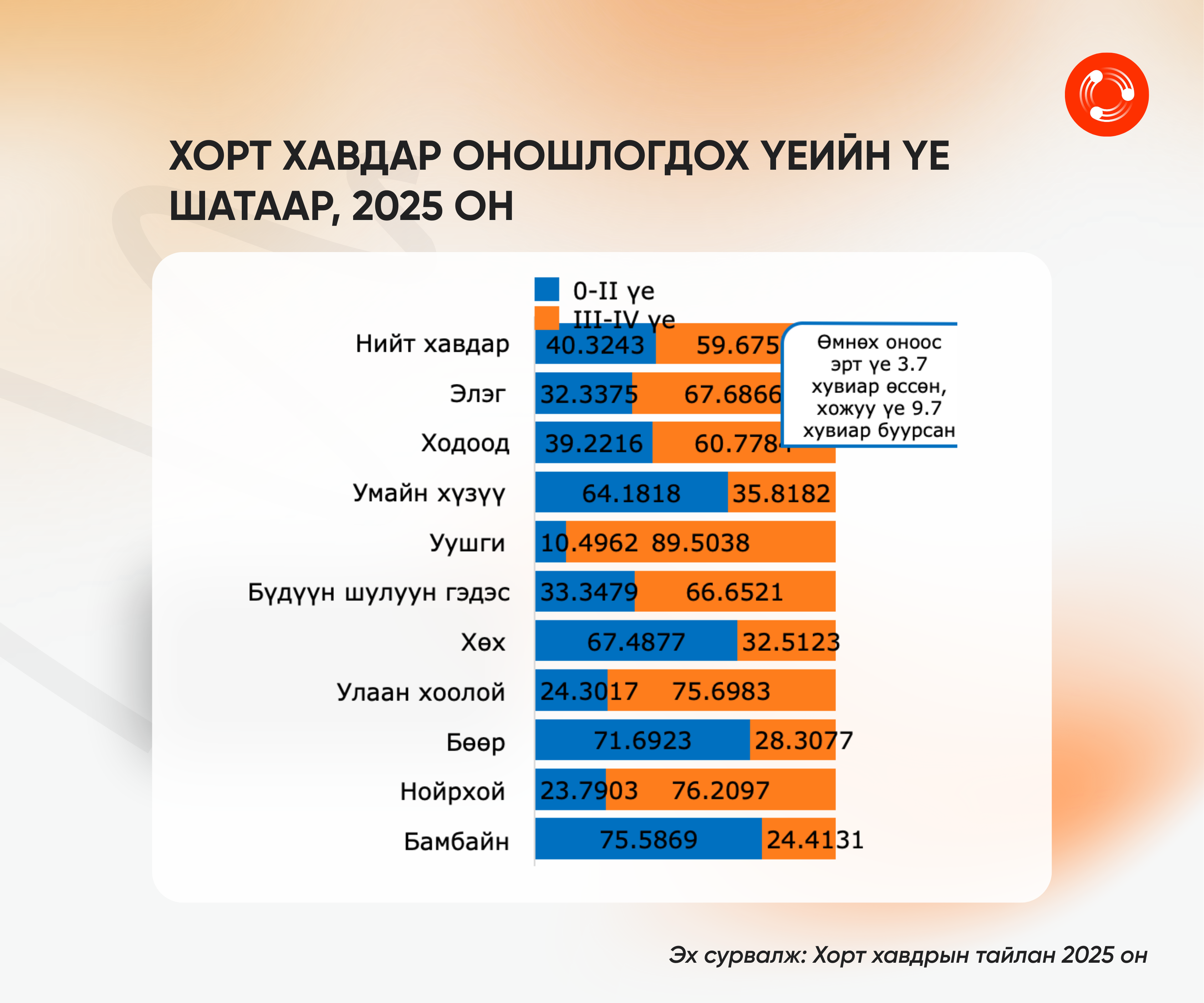 Улсын хэмжээнд 2025 онд хорт хавдрын 8169 шинэ тохиолдол бүртгэгдсэний 40 орчим хувь нь эрт үедээ илэрчээ.