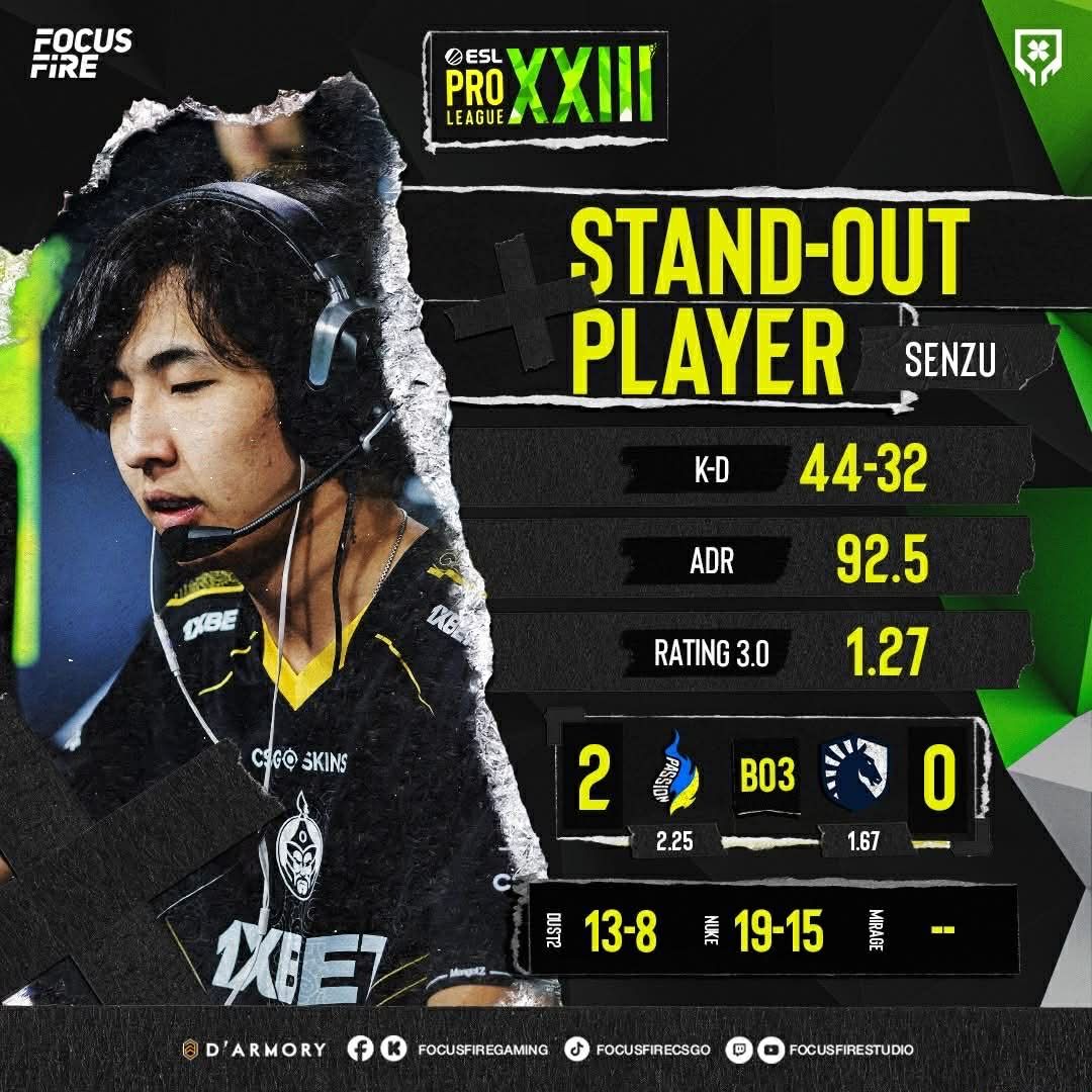 "PassionUA" багийн бүрэлдэхүүнд нэгдсэн Senzu "ESL Pro League Season 23" тэмцээний онлайн шатанд эхний тоглолтоо Liquid багийн эсрэг хийж, ялалт байгууллаа. "PassionUA" баг өрсөлдөгчөө 2:0 харьцаатайгаар буулган авсан ба Senzu хамгийн олон буюу 48 kill хийж бүх тоглогчийг тэргүүллээ.