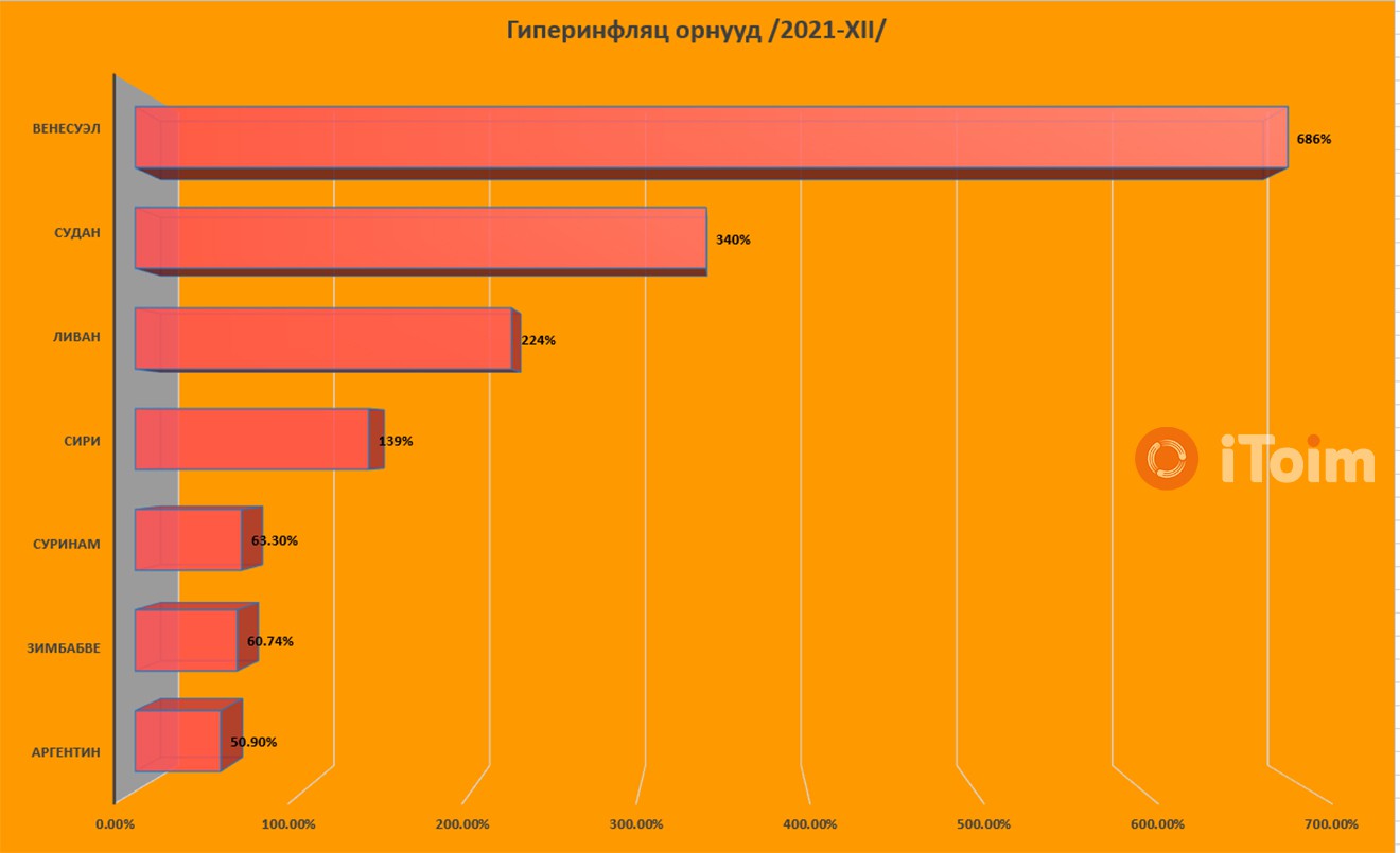Өнөөдрийн байдлаар Венесуэл, Судан, Ливан, Сири тэргүүтэй дэлхийн долоон улс гипер-инфляцтай нүүр тулаад байна.