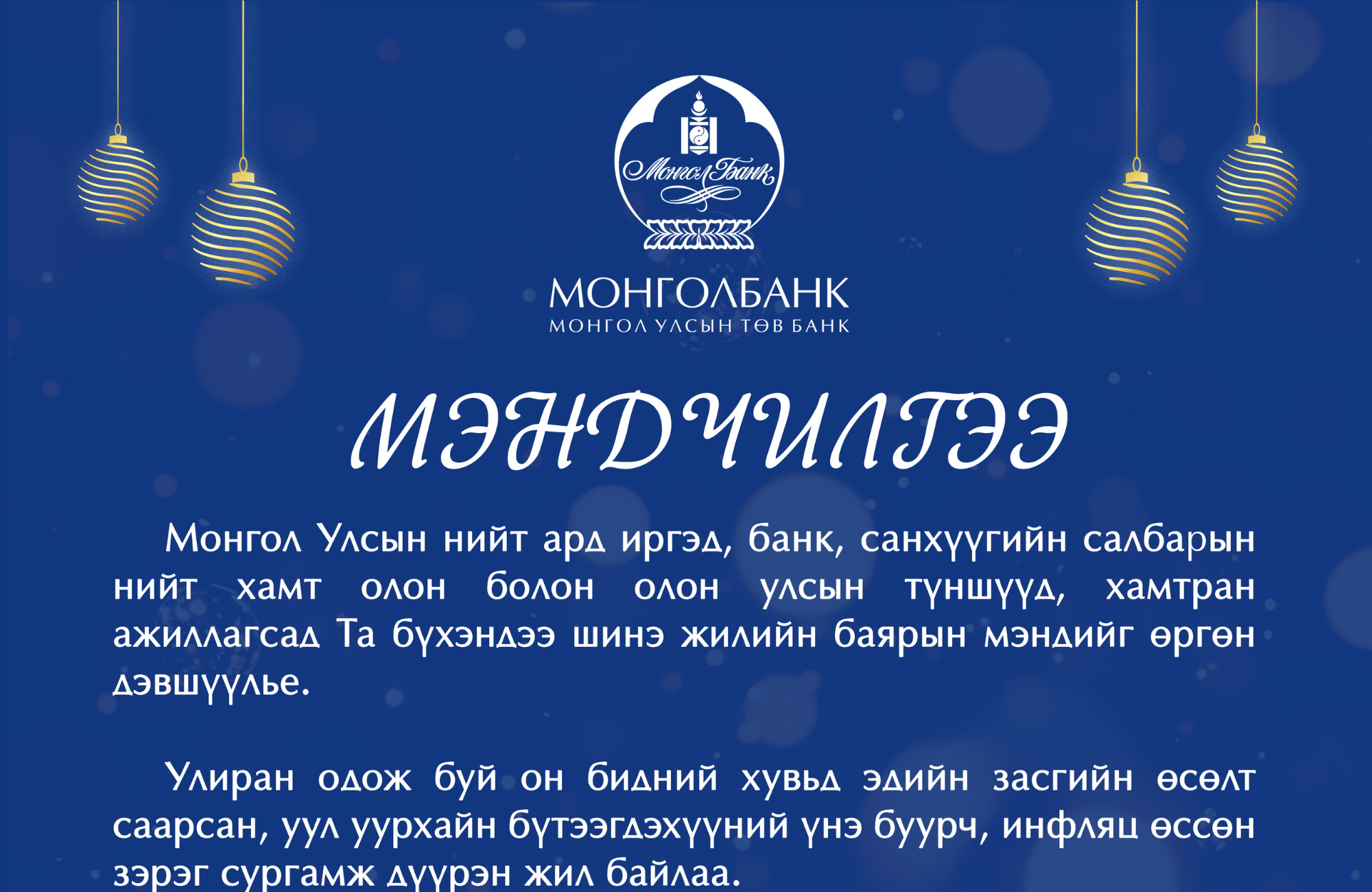 Монголбанкны Ерөнхийлөгч С.Наранцогт мэндчилгээ дэвшүүллээ