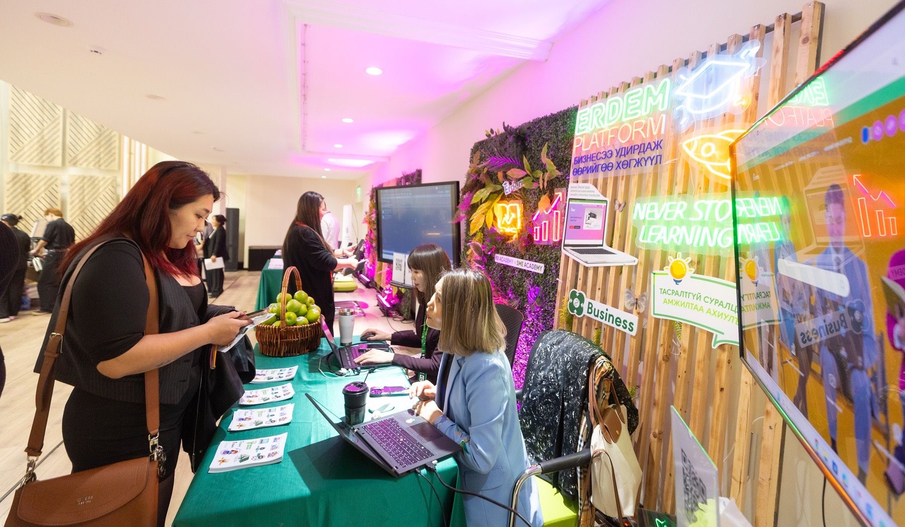 Эмэгтэй бизнес эрхлэгчдийн бизнесийн цахим шилжилтийг дэмжих тус арга хэмжээнд 100 гаруй бизнес эрхлэгч оролцож, бизнестээ хиймэл оюун ухааны хэрэглээг нэвтрүүлэх, цахим аюулгүй байдал, өсөлтийг бий болгох, цахим шилжилтийн үр нөлөө зэрэг сонирхолтой сэдвүүдээр хэрэгцээт мэдээлэл авлаа. Мөн гадаад болон дотоодын дижитал шийдэл нийлүүлэгч технологийн 14 компани мэдээллийн булан ажиллуулж, бизнес эрхлэгч эмэгтэйчүүдэд зөвлөгөө өгч ажилласан юм. Арга хэмжээний нээлтийн үеэр ЕСБХБ-ны ЖДБ-ийн Санхүүжилт, хөгжлийн газрын бүс нутаг хариуцсан захирал Анжела Сакс хэлсэн үгэндээ “Бизнес эрхлэгч эмэгтэйчүүд санхүүжилт, бизнесийн өсөлтийн хувьд үргэлж илүү их бэрхшээлтэй нүүр тулсаар ирсэн. Эмэгтэйчүүдийн эрхэлж буй бизнес хэмжээний хувьд жижиг, үйлчилгээ, худалдаа зэрэг салбарт төвлөрсөн байдгаас санхүүжилт авахад хангалттай барьцаа хөрөнгө гаргаж чадахгүй нөхцөл байдал үүсдэг. Санхүүжилт авахад ийм хэцүү байхад дижитал технологид хөрөнгө оруулах санхүүжилт бүр амаргүй шүү дээ. Бизнес эрхлэгчид олон нийтийн сүлжээ, онлайн худалдааны платформ зэргийг ашиглан дижитал маркетинг хийж байгаа гэдэгт итгэлтэй байна. Эдгээр нь бизнесээ өсгөх хамгийн түгээмэл суваг. Гэхдээ хиймэл оюун ухаан, процессийн автоматжуулалт, блокчэйн, их өгөгдлийн шинжилгээ гэх мэт нарийн технологи шийдлүүд өргөн хэмжээнд ашиглаж эхлээгүй байна. Тиймээс бид ХААН Банктай хамтран дижитал шилжилтийн хөрөнгө оруулалтыг дэмжин ажиллаж байна. Зөвхөн санхүүгийн эх үүсвэр олгохоос гадна эдгээр санхүүжилтийг үр ашигтай ашиглах чадавхийг бэхжүүлэхийг зорьж байна. Зээлийн эх үүсвэр болон урамшуулал, буцаан олголтоос гадна зах зээлд байгаа дижитал шийдлүүдийн талаарх мэдээллийг харилцагчдад хүргэж, дижитал шийдлийг нэвтрүүлж эхлэхэд нь тусалж байна” хэмээн онцолсон юм.