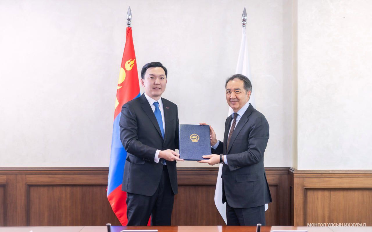 Монгол Улсын Их Хурлын дарга Н.Учрал Оросын Холбооны Улсад хийж буй албан айлчлалынхаа эхний өдөр (2026.02.09) Евразийн эдийн засгийн комиссын Сайд нарын зөвлөлийн дарга Бакытжан Абдирович Сагинтаевтай уулзлаа.